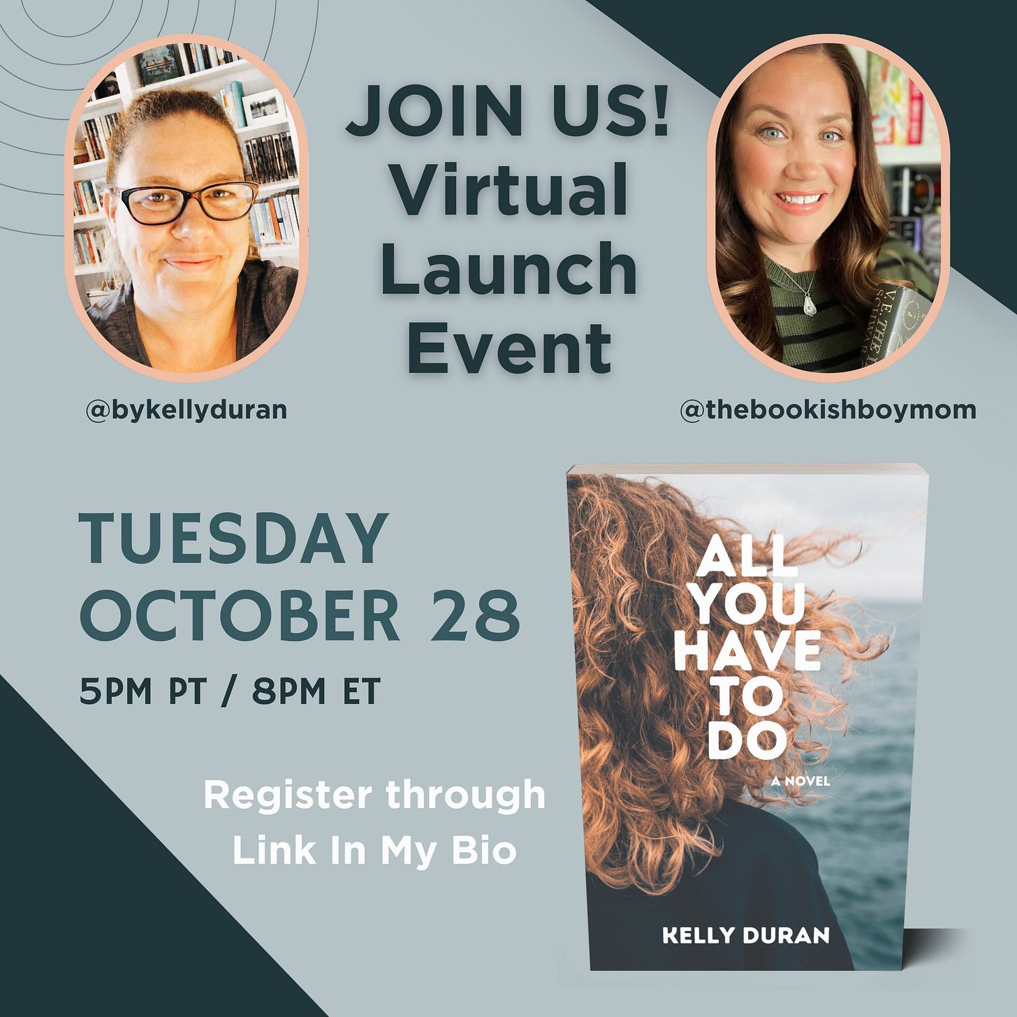 On Tuesday, Oct 28 at 5pm PT / 8pm ET, I’ll be chatting with Stephanie (@thebookishboymom) about All You Have To Do—the process, the feels, and everything in between. 💛